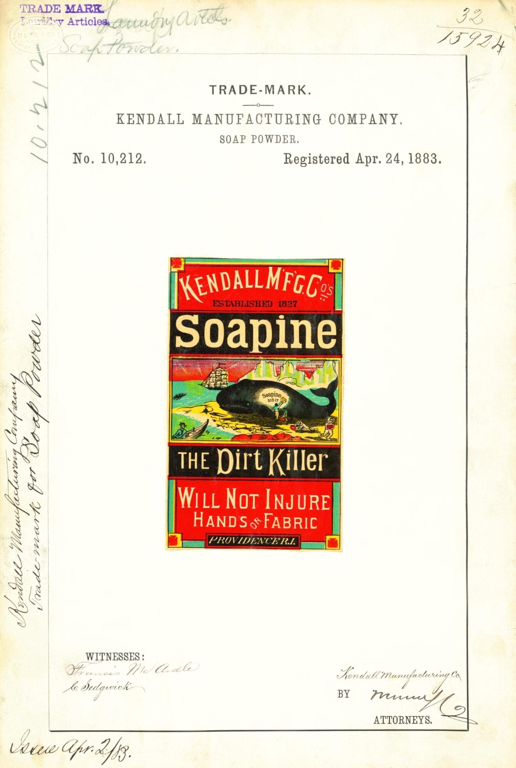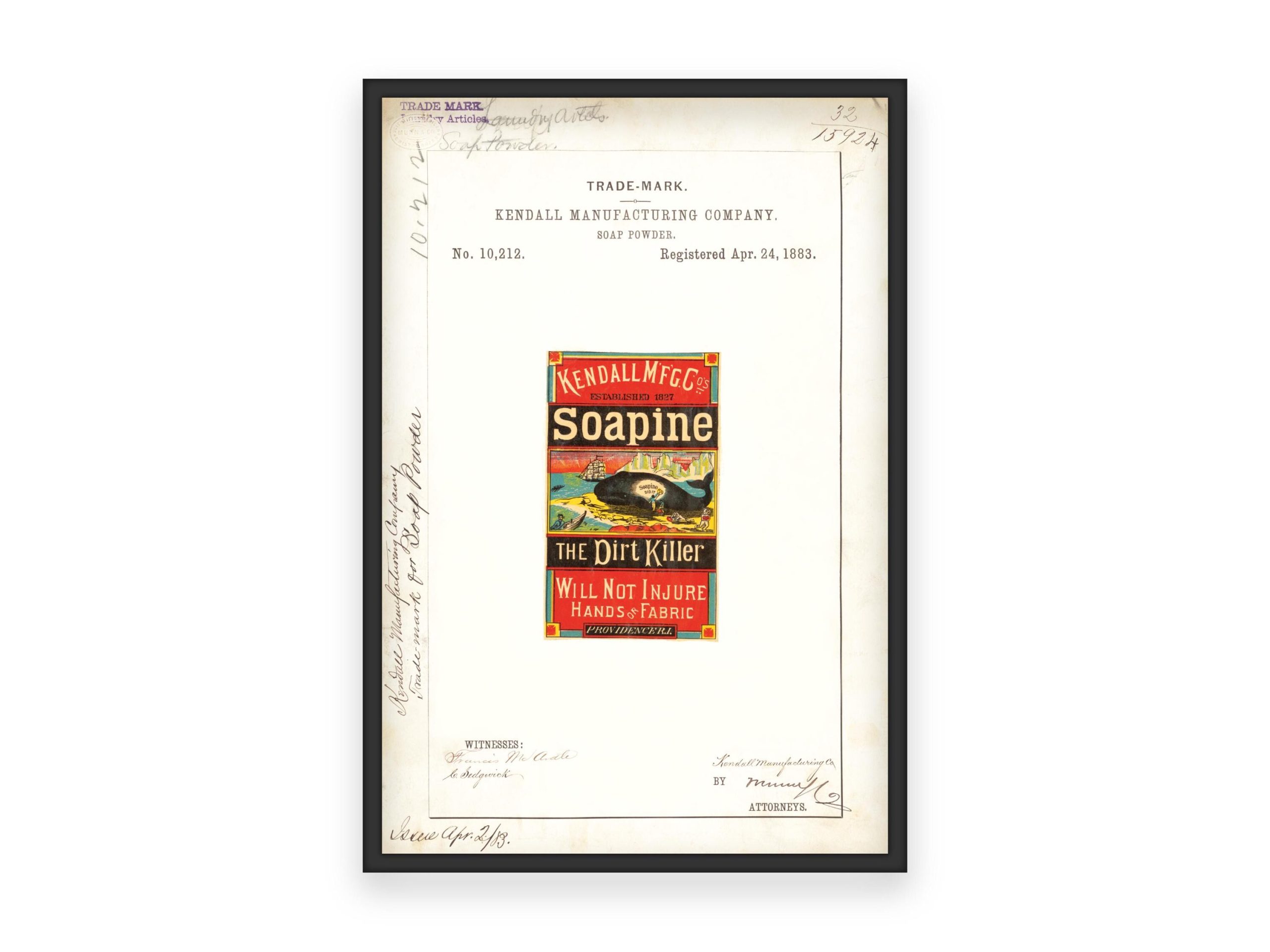Vintage Trademark Art Print: Kendall Manufacturing Co. Soapine 1883 Poster